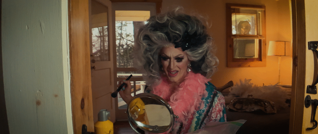 The film was shot at Rainbow Mountain Resort in the Pocono Mountains, where Elvirus had performed years earlier. Simpson said drag performers routinely get booked in unexpected places, so setting two feuding queens at a remote gay campground felt plausible. Elvirus’s character also works at the campground.