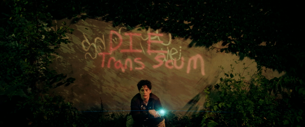 And that’s exactly what the viewer sees as they watch Axis walk into the night. Each of Axis’ steps shows the real fear of queer & trans lives, while reminding audiences that horror belongs to those who live it.